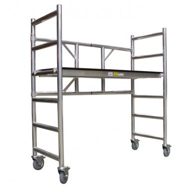 Asennustelineessä on vahva runko. Telineessä on myös vakiona isot 160mm, tahraamattomat pyörät, joilla pääsee helposti kaapelien yms. yli. Pyörän materiaali on joustavaa, neopreenikumia.