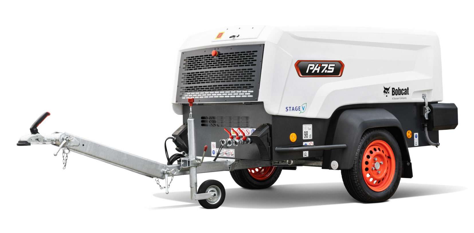 Bobcat PA7.5 Stage 5 vaunukompressori on varusteltu EU Stage V päästömääräykset täyttävällä Yanmar 4TNV88 dieselmoottorilla ja jopa tämänkin kokoluokan malliin on saatavilla generaattori-optio sähköntuotantoa varten! Moottori on varustettu dieselpartikkelisuodattimella, joka poistaa pakokaasuista tumman noen, joka on tyypillinen ominaisuus vanhemmille dieselmoottoreille. Partikkelisuodatin on täysin huoltovapaa.